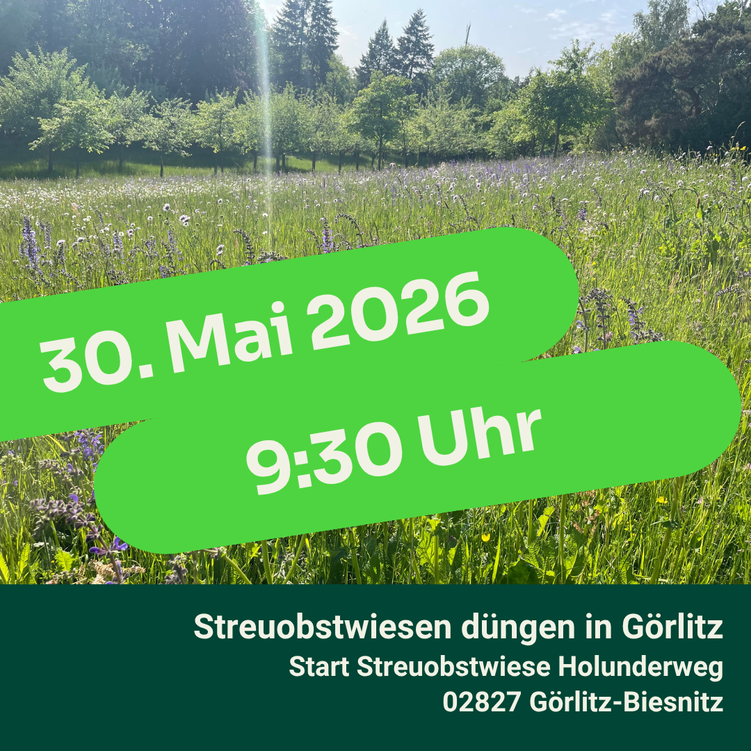 Am 30. Mai setzen wir in die diesjährige Pflegesaison auf unseren Streuobstwiesen in Görlitz fort. Gemeinsam wollen wir auf drei Flächen Phosphat ausbringen, um die Obstbäume gezielt mit wichtigen Mineralstoffen zu versorgen.
