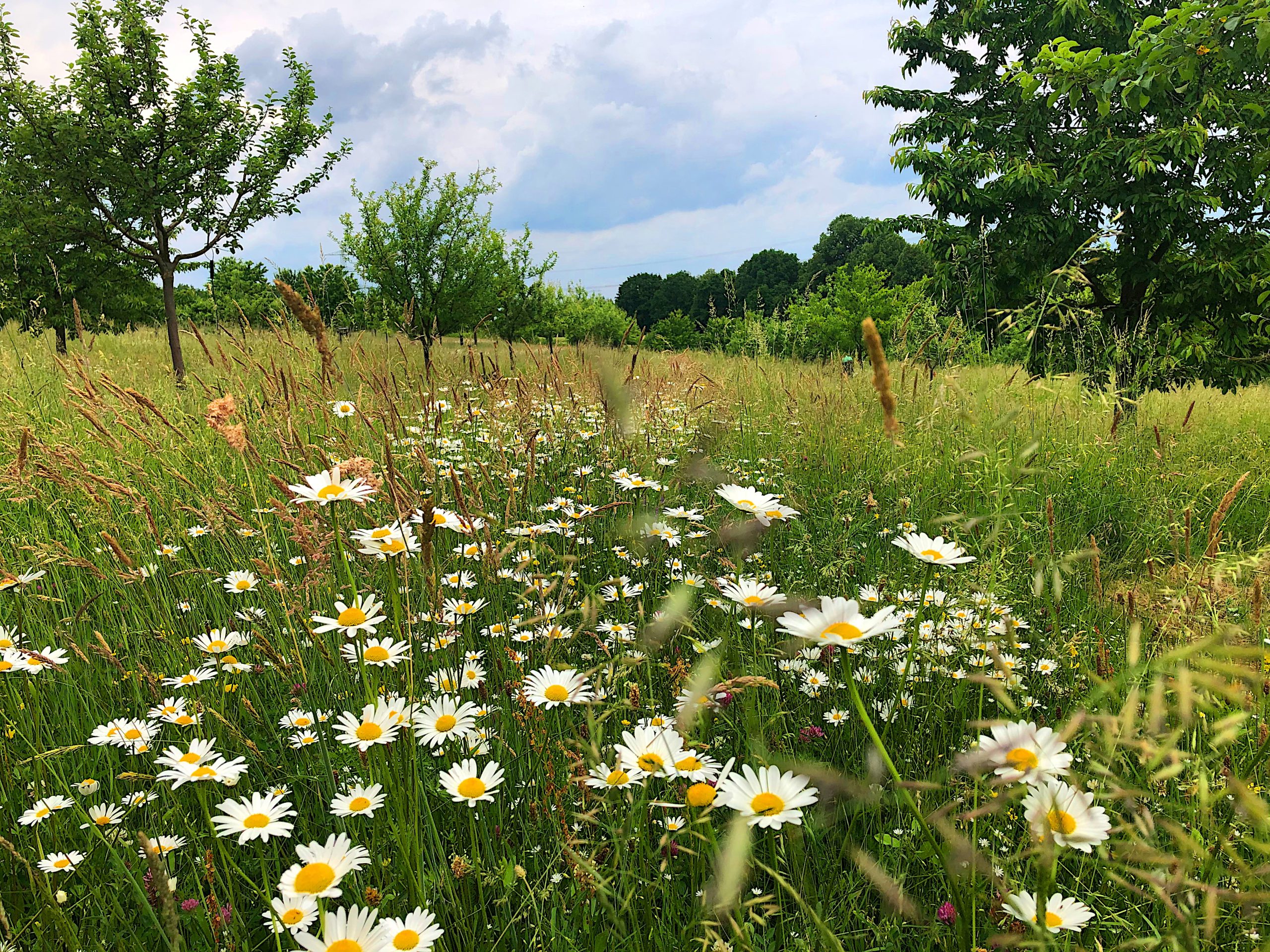 Um eine gute Nahrungsgrundlage für alle Tiere zu schaffen, legten wir auf der Wiese im Herbst 2018 artenreiche Blühstreifen mit Ansaaten aus regionalem Saatgut an. Um auch im Spätwinter und Frühjahr zusätzlich Blüten für die ersten Insekten zu schaffen, setzten wir im Herbst 2019 noch 2.000 Zwiebeln und Knollen von Frühlingsblühern (Krokus, Traubenhyazinthe, Blaustern, Narzissen, Anemone).